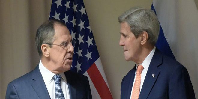 بحث وزير الخارجية الروسي سيرغي لافروف ونظيره الأمريكي جون كيري خلال اتصال هاتفي اليوم سبل تعزيز اتفاق وقف الاعمال القتالية في سورية والتسوية السياسية للازمة فيها ومكافحة الإرهاب.