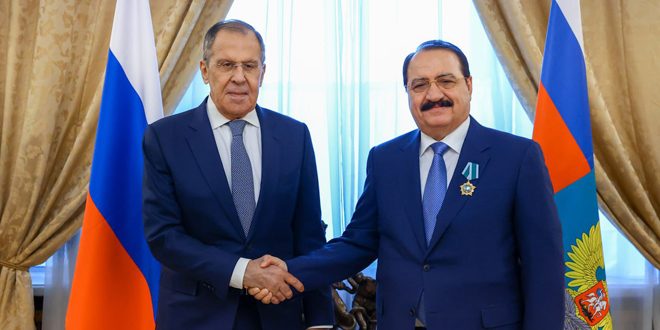 لافروف يقدم وسام الصداقة لسفير سورية السابق لدى روسيا الاتحادية