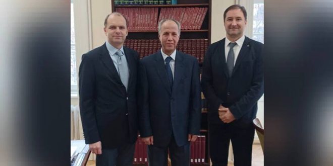 بحث رئيس البعثة الدبلوماسية للجمهورية العربية السورية في بودابست السفير بشار سمارة مع عميد جامعة بازماني بيتر الدكتور ناندوربيرهار آفاق تطوير التعاون الجامعي بين سورية والجامعة.