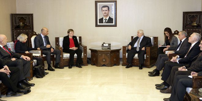 استقبل وليد المعلم نائب رئيس مجلس الوزراء وزير الخارجية والمغتربين قبل ظهر اليوم الوفد البرلماني التشيكي برئاسة زوزكا بيباروفا رويبروفا.