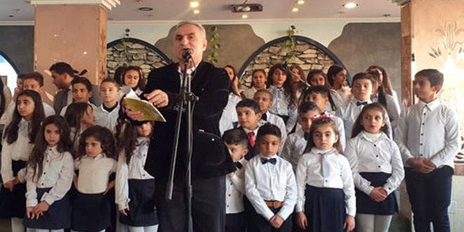 وقدم الطفل جبران نصر الله عرضاً مسرحياً استعرض فيه أسماء عدد من شهداء سورية وأثار عاطفة الحضور الوجدانية خلال حديثه عنهم.
