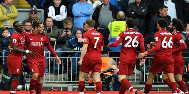 عاد ليفربول ليتربع على صدارة الدوري الإنكليزي الممتاز بفوزه الصعب والمتأخر على ضيفه توتنهام 2-1 اليوم على ملعب أنفيلد ضمن منافسات الجولة الثانية والثلاثين وأحرز هدفي ليفربول كل من روبرتو فرمينو في الدقيقة 16 ومدافع توتنهام توبي ألديرفيريلد بالدقيقة 90 بالخطأ في مرماه فيما سجل لوكاس مورا هدف توتنهام الوحيد بالدقيقة 70.