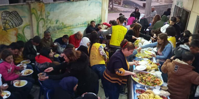 وجاءت مأدبة الإفطار ضمن حملة وزارة الشؤون الاجتماعية والعمل المقامة تحت عنوان “رمضان الخير والنصر، وشملت نحو ١٠٠ شخص كما ذكر رئيس اللجنة الإدارية لفرع الجمعية السورية للمعوقين جسدياً بالسويداء نزار شجاع.