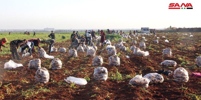 رئيس دائرة التخطيط و التعاون الدولي في مديرية الزراعة المهندس حسن الأحمد بين أن محصول البطاطا يزرع على عروتين ربيعية و خريفية موضحاً أن المخطط للعروة الربيعية في هذا الموسم بلغ 1408 هكتارات تم تنفيذ 2670 هكتاراً وللعروة الخريفية 739 هكتاراً تم زراعة 1447 هكتاراً.