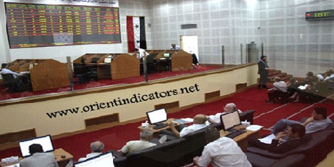 ارتفع مؤشر سوق دمشق للأوراق المالية نتيجة جلسة تداولات اليوم 89ر42 نقطة عن الجلسة الماضية حيث أغلق على قيمة 76ر1994 نقطة وبنسبة تغير موجبة قدرها 20ر2 بالمئة نتيجة تداول 287205 أسهم موزعة على 215 صفقة بقيمة تداولات إجمالية بلغت 869ر68 مليون ليرة.