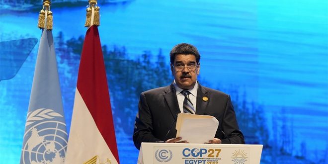 ونقلت وكالة نوفوستي عن مادورو قوله خلال مشاركته في قمة المناخ (كوب 27) في مصر: إن اقتصادات هذه الدول هي من لوث ولا يزال يلوث الكوكب لمصلحة منفعتها الذاتية.