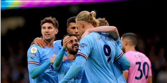سجل أهداف فريق مانشستر سيتي كل من اللاعبين كيفين دي بروين وجاك جريليش وإيرلنغ هالاند في الدقائق 24 و 72 و 82 بينما سجل هدف آرسنال الوحيد اللاعب بوكايو ساكا في الدقيقة 42 من عمر اللقاء.