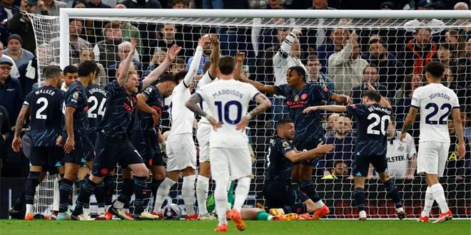 فاز مانشستر سيتي على مضيفه توتنهام اليوم بهدفين دون رد في مباراة مؤجلة في إطار منافسات الدوري الإنكليزي الممتاز.