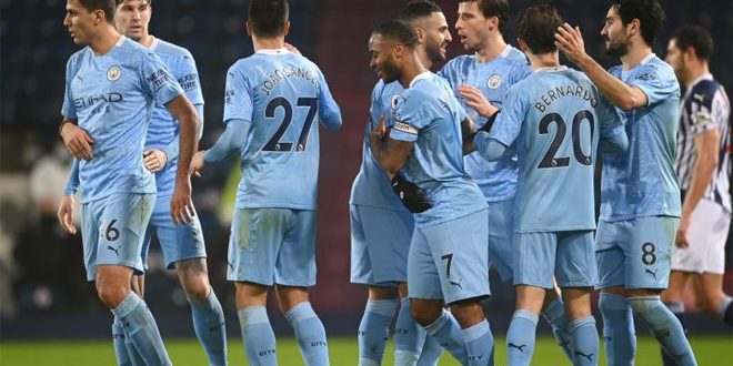 قفز مانشستر سيتي إلى صدارة الدوري الإنكليزي الممتاز لكرة القدم بالفوز بخماسية نظيفة على وست بروميتش ألبيون اليوم.