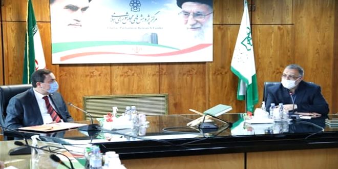 بحث سفير سورية في طهران الدكتور شفيق ديوب ورئيس مركز الأبحاث في مجلس الشورى الإسلامي الإيراني الدكتور علي رضا زاكاني سبل تعزيز علاقات التعاون بين البلدين والارتقاء بها في مختلف المجالات.