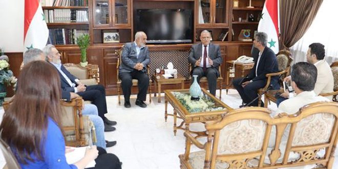 بحث وزير الزراعة والإصلاح الزراعي المهندس محمد حسان قطنا مع نائب رئيس جمعية الصداقة الشعبية السورية الإيرانية أحمد دستمالجيان والوفد المرافق له، التعاون في مجالات تأمين الجرارات الزراعية والأسمدة الآزوتية ومستلزمات البيوت المحمية والبذار.