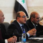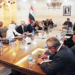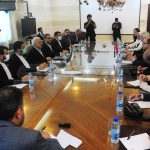 بحث وزير الاقتصاد والتجارة الخارجية في حكومة تسيير الأعمال الدكتور محمد سامر الخليل مع رئيس لجنة الأمن القومي والسياسة الخارجية بمجلس الشورى الإسلامي الإيراني وحيد جلال زاده والوفد المرافق له سبل تعزيز وتطوير العلاقات الاقتصادية والتجارية وتذليل الصعوبات التي تحول دون تقدم التعاون في مجال الاستثمار والتجارة وذلك في قاعة اللجنة الاقتصادية بمبنى رئاسة مجلس الوزراء.