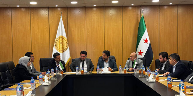 بحث المدير العام لمدينة الشيخ نجار الصناعية في حلب أحمد كردي مع نائب المدير العام للعلاقات الخارجية في وزارة الصناعة والتكنولوجيا التركية سبل تعزيز التعاون الاقتصادي بين الجانبين.