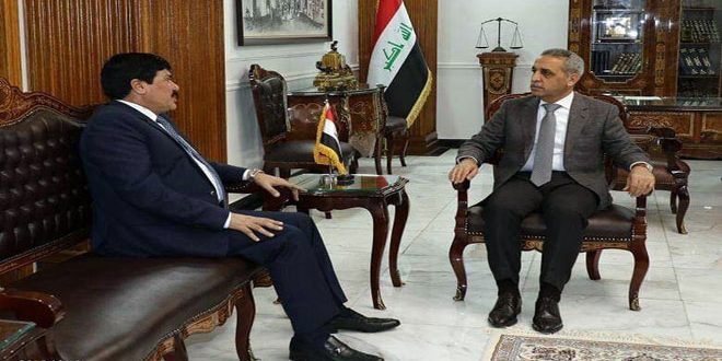 بحث وزير النقل العراقي المهندس عبد الله لعيبي مع سفير سورية في العراق صطام جدعان الدندح اليوم سبل تعزيز التبادي التجاري وتطوير التعاون في مجالات النقل البري والجوي بين البلدين الشقيقين