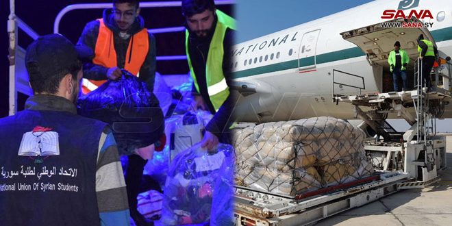 مراسلة سانا: وصول طائرة مساعدات مقدمة من منظمة الصحة العالمية إلى مطار دمشق الدولي تحمل 37 طناً من المواد الطبية الإسعافية ومواد لمعالجة النزلات الرئوية وخيماً للمتضررين من الزلزال.