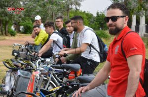 انطلق اليوم نحو 40 شاباً وشابة من مختلف المناطق على دراجاتهم الهوائية، من دوار السيد الرئيس بحمص، في جولة على أحياء حمص ضمن مبادرة مشوار عالبسكليت 1 التي نظمها فريق دعسة بسكليت ومشروع مدى الثقافي.