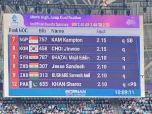 تأهل لاعب منتخب سورية لألعاب القوى مجد الدين غزال إلى الدور النهائي لمسابقة الوثب العالي لحساب منافسات ألعاب القوى ضمن الألعاب الآسيوية 19 التي تنظمها خانجو الصينية.