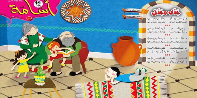 احتفت مجلة اسامة في عددها الجديد الصادر الكترونيا عن الهيئة العامة السورية للكتاب “مديرية منشورات الطفل” بالجد والجدة من خلال لوحة الغلاف للفنانة غصون دمراني وهي تعبر عن فرح الأطفال بلقاء جديهما وقصيدة الشاعر قحطان بيرقدار بعنوان جدي وجدتي.
