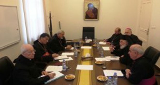 بحث مجلس رئاسة البطاركة والاساقفة الكاثوليك في لبنان خلال اجتماعه اليوم مع السفير البابوي في لبنان المونسنيور غابريالي كاتشا الاوضاع الراهنة في لبنان وبلدان الشرق الاوسط والدور الواجب على الكنائس الاضطلاع به لجعل الاسرة الدولية تعمل على إنهاء الحرب وإيجاد حلول سليمة في سورية والعراق لوقف تهجير المسيحيين من أوطانهم.
