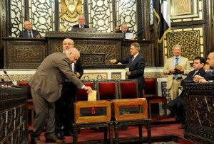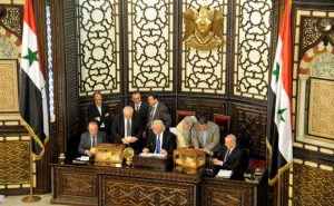 وبين رئيس المجلس أن هذه المرحلة تتطلب من المجلس انطلاقا من دوره التشريعي جهودا استثنائية ومتميزة لأن تطوير سورية في مرحلة ما بعد الحرب لا تقل أهمية وصعوبة عن إعادة الاستقرار إلى البلاد داعيا الجميع إلى “العمل لتطوير جميع أركان الدولة مترفعين عن الأمور الصغيرة ومتعالين عن المماحكات بكل أنواعها والوقوف وقفة رجل واحد خلف السيد الرئيس بشار الأسد القائد الذي يقود سفينة الوطن في محيط متلاطم الأمواج ليوصلها إلى شاطئ الأمان”.