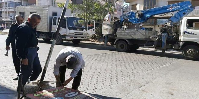 بدأ مجلس مدينة حمص حملة لإزالة جميع اللوحات الإعلانية المخالفة والصور من على أعمدة الإنارة والأشجار والحدائق والأرصفة في جميع شوارعها.
