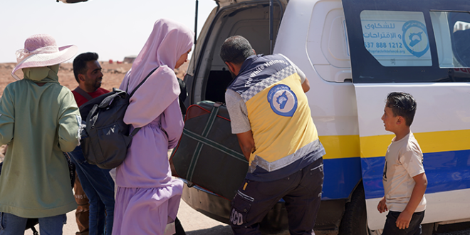 ودخلت القافلة عبر معبر مدينة بصرى الشام في ريف درعا الشرقي حيث قامت فرق الدفاع المدني السوري بنقلهم إلى مراكز إيواء مؤقتة في المحافظة، وتقديم المساعدات الإنسانية الإغاثية والغذائية والدوائية لهم ريثما يتم تأمين عودة كريمة وآمنة إلى منازلهم.
