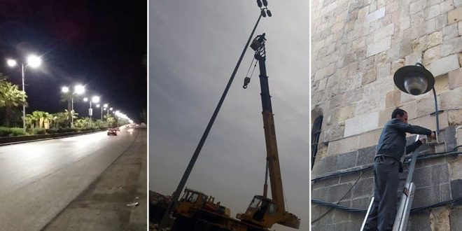 وبين مدير الإنارة في المحافظة المهندس زياد سعدة في تصريح لمندوب سانا اليوم أن ورشات المديرية بالتعاون مع فرع دمشق في الشركة العامة لأعمال الكهرباء والاتصالات (السورية للشبكات) نفذت أعمال الصيانة للعديد من أجهزة الإنارة في شوارع وساحات وحدائق المدينة واستبدلت أجهزة (الصوديوم) بأجهزة تعمل بتقنية (الليدات) الموفرة للطاقة بهدف التقليل من المصاريف التشغيلية لإنارة الشوارع إضافة إلى تركيب أجهزة إنارة في عدد من الأحياء.