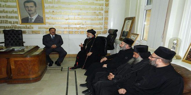 وبين المحافظ خلال لقائه في مبنى المحافظة اليوم عددا من رجال الدين المسيحي في مدينتي الحسكة والقامشلي أن يد الإرهاب التي طالت المدنيين الأبرياء في المحافظة خلال الفترات السابقة لم تميز بين أحد منهم وهذا دليل على أن الشعب السوري بكل أطيافه هو المستهدف من قوى الإرهاب العالمي ولا خلاص منه إلا بتوحيد الجهود والوقوف صفا واحدا مع أبطال جيشنا الذين يحققون الانتصارات المشرفة في كل ميادين القتال وتعزيز جبهتنا الداخلية.