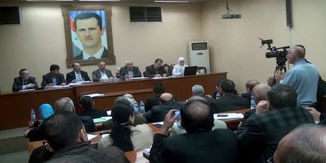 حضر الجلسة رئيس المجلس صالح بكرو ونائب رئيس المكتب التنفيذي راتب عدس وعدد من أعضاء مجلس الشعب ومديرو المؤسسات الخدمية.