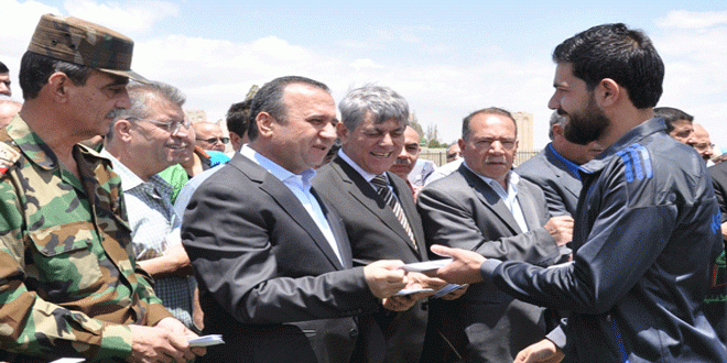 كرم محافظ ريف دمشق المهندس حسين مخلوف فريق رجال نادي الكسوة بمناسبة صعوده إلى مصاف أندية الدرجة الأولى بكرة القدم.
