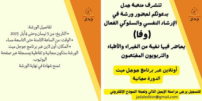 وختم العوام حديثه: إنَّ الورشة مجانيّة وتفاعلية ومسجّلة عبر صفحة اليوتيوب، يديرها أكثر من عشرة مختصين أكاديميين في المجال التربوي، ومدّتها شهر تبدأ في الخامس من نيسان الحالي وتنتهي في الرابع من أيّار، وحضورها أون لاين عبر برنامج غوغل ميت، وفي نهاية الورشة ستُمنَح شهادة، ويمكن التسجيل والاستفسار عبر البريد الإلكتروني: