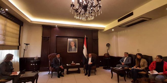 بحث رئيس اللجنة العليا للإغاثة وزير الإدارة المحلية والبيئة المهندس حسين مخلوف مع مدير مكتب الأمم المتحدة لخدمات المشاريع محمد عثمان أكرم إمكانية استجابة المكتب للزلزال والمساهمة في التخفيف من آثاره.