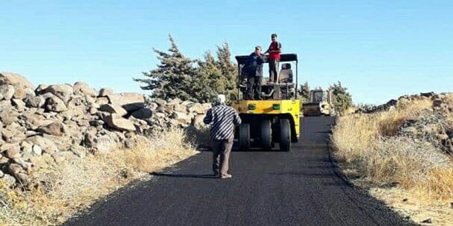 مد قميص إسفلتي لطريق الحديجة- المشنف بالسويداء لتخديم المزارعين في مناطق الإنتاج