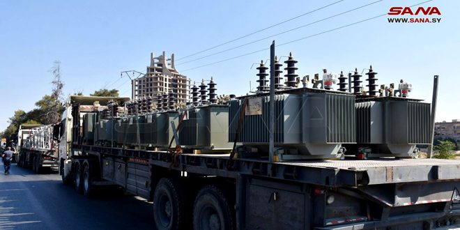 بدوره أوضح مدير المؤسسة العامة لنقل وتوزيع الكهرباء المهندس هيسم الميلع أنه وضمن خطة مؤسسة نقل وتوزيع الطاقة الكهربائية الاستثمارية تم إرسال 13 شاحنة إلى محافظة حمص تحمل محولات باستطاعات مختلفة 10 محولات استطاعة 100 ك. ف. ا و10 محولات استطاعة 200 ك ف ا و3 محولات باستطاعة 400 ك ف ا و3 محولات استطاعة 1000 ك ف ا و35 برجاً بمقاطع مختلفة وأمراساً وكابلات وعلب نهاية بهدف إعادة وثوقية الشبكة ومعالجة مشكلة الأحمال التي تسبب الاختناقات الموجودة في المحافظة.