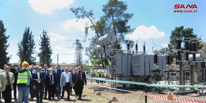 بمناسبة عيد العمال دشن وزير الكهرباء المهندس غسان الزامل محطة تحويل (دوما 1) بريف دمشق، باستطاعة 30 ميغا فولط أمبير، وخلية خط 66 كيلو فولط، إضافة إلى إعادة تأهيل خط 66 كيلو فولط (دوما -عدرا 2).