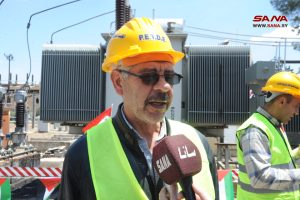 المهندس هيسم الميلع مدير المؤسسة العامة لنقل وتوزيع الكهرباء، أشار إلى أن تدشين المشروع بيوم عيد العمال جاء بعد جهد كبير ومتواصل استمر أربعة أشهر لوضعه في الخدمة، لتخفيف التقنين القسري في منطقة دوما، وتكريم العمال اليوم على تفانيهم وإخلاصهم، مشيراُ إلى أن مشاريع المؤسسة مستمرة في كل المحافظات حتى يتحسن وضع الكهرباء.