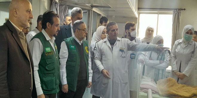 تفقد وفد سعودي من مركز الملك سلمان للإغاثة والأعمال الإنسانية وعدد من المعنيين في وزارة الصحة مشفى الأطفال الجامعي بدمشق، للاطلاع على الواقع الصحي وتحديد الاحتياجات.