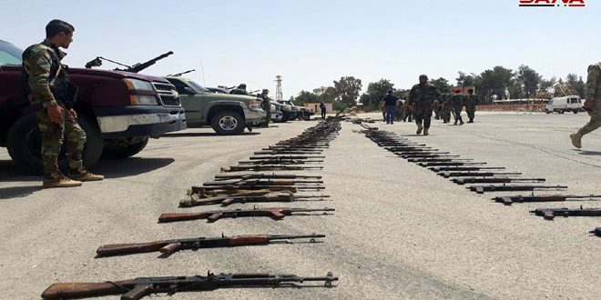 واصل إرهابيو “جيش الإسلام” في بلدة الضمير في منطقة القلمون بريف دمشق الشرقي تسليم أسلحتهم الثقيلة والمتوسطة في إطار الاتفاق الذي تم التوصل اليه مع الدولة السورية.