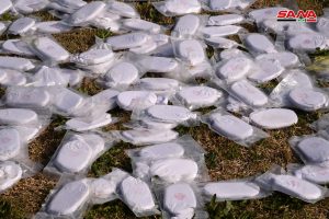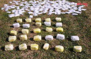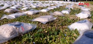 وذكر مصدر في الجهات المختصة في تصريح لمراسل سانا أنه “خلال المتابعة الدقيقة وبناء على تحريات ومعلومات حول أماكن ومحاور تحرك مجموعة من المتاجرين والمهربين للمخدرات نفذت دورية من الجهات المختصة كمينا وعملية مداهمة لمكان وجودهم في إحدى مناطق ريف دمشق وألقت القبض عليهم متلبسين وبحوزتهم كمية كبيرة من المخدرات تقدر بنحو 200 كيلو غرام من مادة الحشيش المخدر و 600 ألف حبة كبتاغون”.