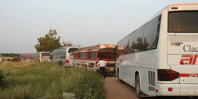 وأضاف المراسل.. إن دخول الحافلات عبر معبر العيس سيتم بالتوازي مع إخراج الحافلات التي تقل الإرهابيين من مخيم اليرموك باتجاه إدلب.