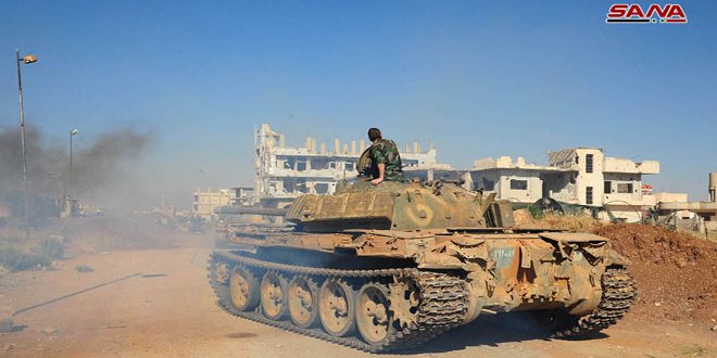 وأشار المراسل إلى أن عمليات الجيش تميزت بالدقة وترافقت بكثافة نارية أسفرت عن تدمير معظم تجمعات ومحاور تحرك الإرهابيين والقضاء على أعداد منهم وتدمير أسلحتهم بينما فر من تبقى منهم باتجاه الحدود الأردنية حيث تواصل وحدات الجيش ملاحقتهم واستهدافهم بالأسلحة المناسبة.