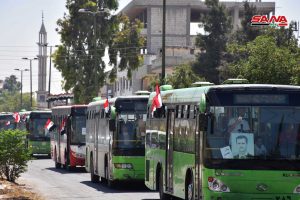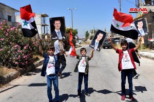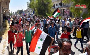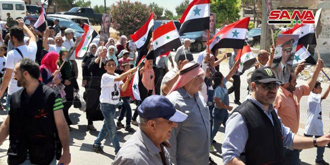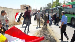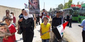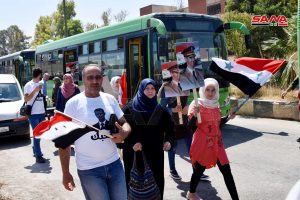 العائدون الذين أقلتهم حافلات أمنتها المحافظة وسيارات خاصة إلى المدينة ساروا في شوارعها حاملين راية الوطن وصور السيد الرئيس بشار الأسد والفرحة تنضح من وجوههم لعودتهم الميمونة الآمنة بعد سنوات من التهجير نتيجة اعتداءات التنظيمات الإرهابية قبل اندحارها منها.