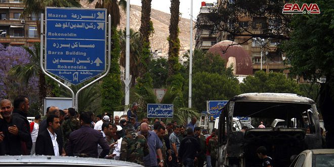 ولفت مراسل سانا من مكان الاعتداءات الارهابية إلى احتراق عدد من السيارات في المكان وتحطم زجاج نوافذ في الأبنية السكنية والمحال التجارية في محيط ساحة الميسات واضرار في الممتلكات الخاصة في برج دمشق.