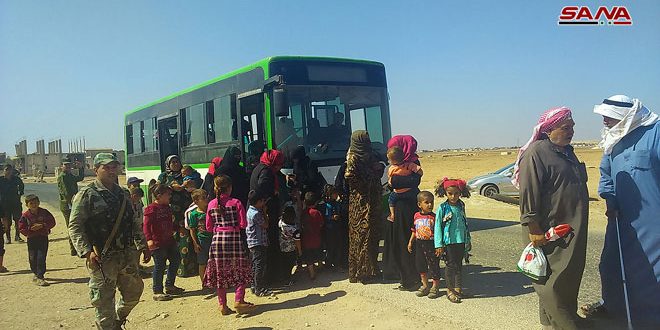 عادت اليوم دفعة جديدة من الأهالي إلى قراهم وبلداتهم في أرياف حلب وإدلب وحماة التي طهرها الجيش العربي السوري من الإرهاب عبر ممر أبو الضهور قادمين من مناطق انتشار التنظيمات الإرهابية في إدلب.