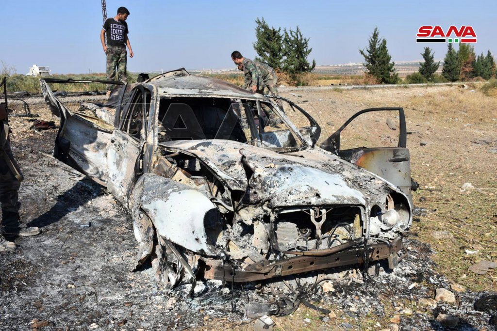 وذكر مراسل سانا في حماة أن سيارة مفخخة يقودها انتحاري من تنظيم “جبهة النصرة” الإرهابي قادمة من اتجاه قرية صهيون حاولت اختراق خطوط دفاعات الجيش على الأوتستراد الدولي دمشق/ حلب والوصول إلى النقاط العسكرية عند المدخل الشمالي لمدينة خان شيخون المحررة وتعاملت معها الوحدة العسكرية المرابضة في المكان ودمرتها قبل وصولها إلى هدفها.