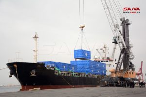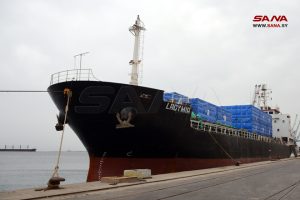 وصلت الباخرة ليدي ميا إلى مرفأ اللاذقية اليوم تحمل مساكن مسبقة الصنع مقدمة من جمهورية الصين الشعبية.