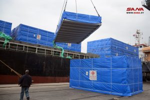 وأوضح الدكتور موفق الصوفي عضو المكتب التنفيذي لشؤون الصحة والدفاع المدني أن حمولة الباخرة تضم 228 مسكناً مسبق الصنع، موزعة على 57 مجموعة، بوزن 420 طنا، مقدمة من الشعب الصيني للمتضررين من الزلزال في محافظة اللاذقية، لافتاً إلى أنها الباخرة الأولى وستتبعها بواخر أخرى في الأسابيع القادمة.