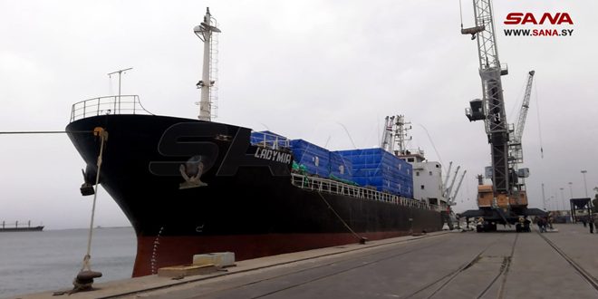 وصول الباخرة (ليدي ميا) إلى مرفأ اللاذقية تحمل مساكن مسبقة الصنع مقدمة من الصين