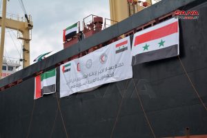 اللاذقية-سانا وصلت إلى ميناء اللاذقية اليوم سفينة مساعدات إماراتية هي الرابعة ضمن حملة (جسور الخير)،