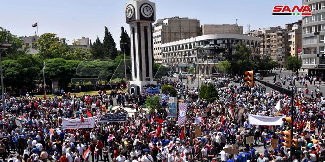 وقفة وطنية في حمص رفضاً وتنديداً بما يسمى “قانون قيصر” وتمسكاً بالثوابت الوطنية